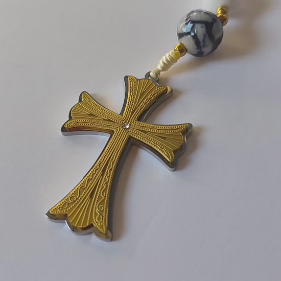 Terço Lembrança de Portugal com Contas de Nacár e Porcelana