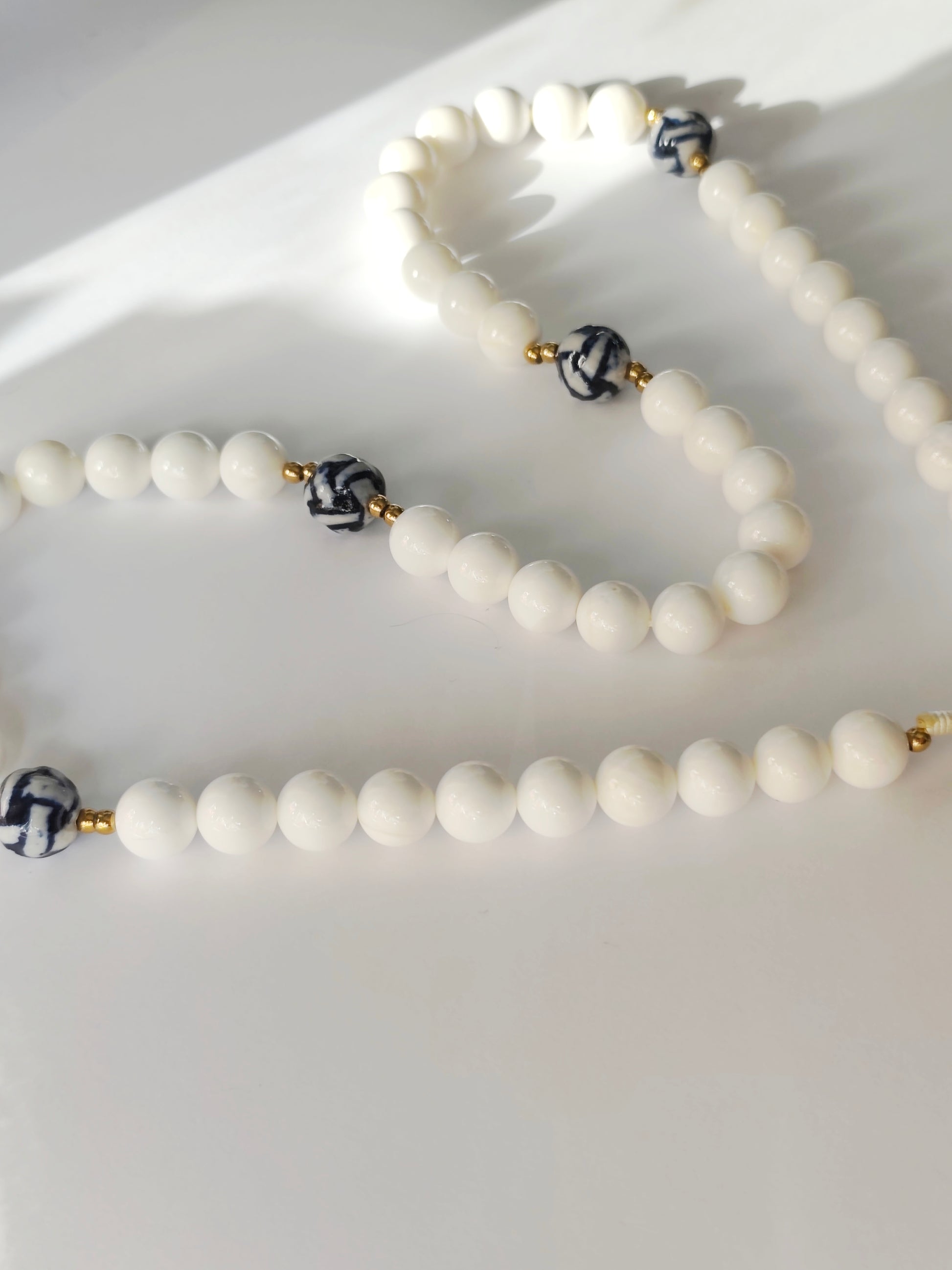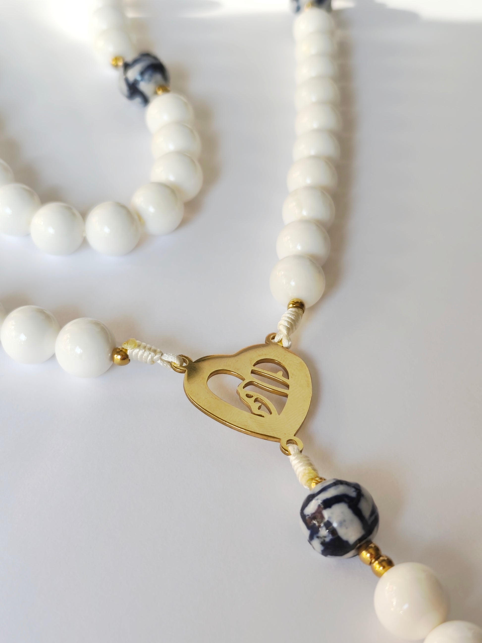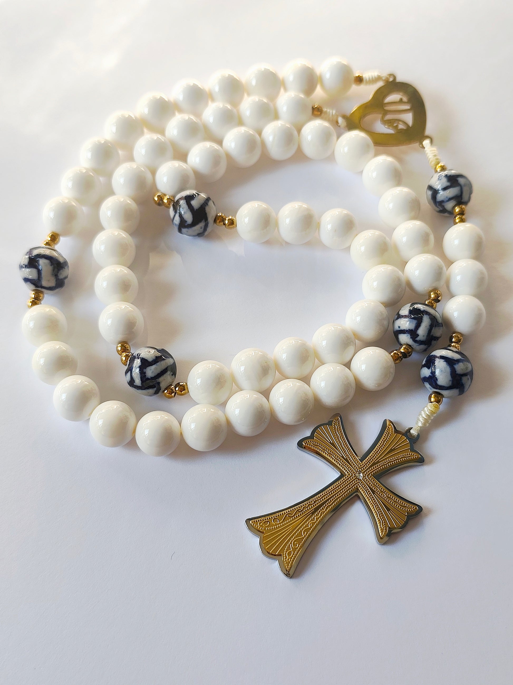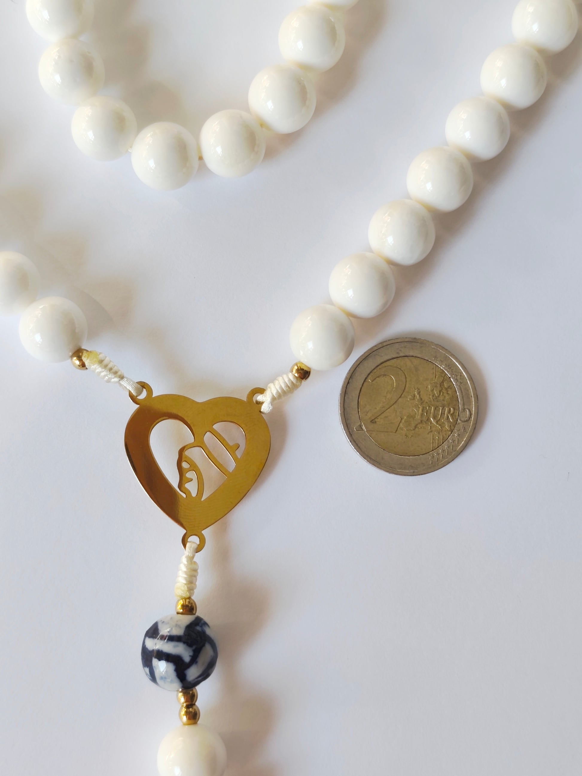 Terço de bolas grandes - Avé-Marias 12mm em Nacár e Pai-Nossos de 14mm em porcelana.